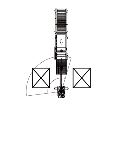 The pallet is transported from the pallet warehouse, and two conveyor belts are combined to form two stacking lines, which can smoothly stack two different types of products from two lines. |