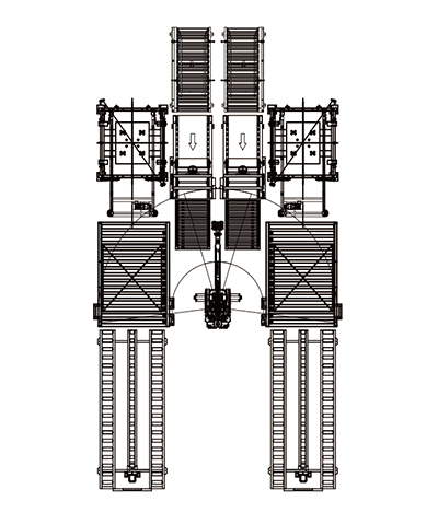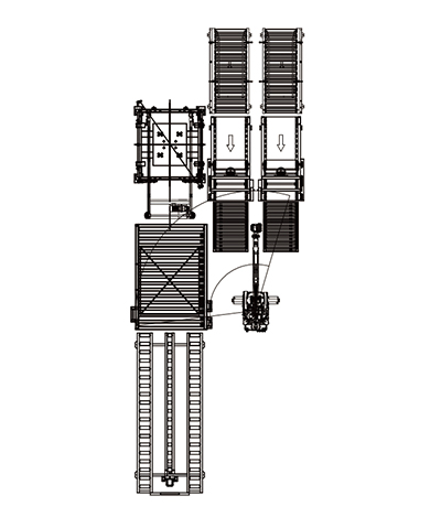 Vertically arranged, the pallets are transported from the pallet warehouse and transported using conveyor belts, which can achieve higher automation. |