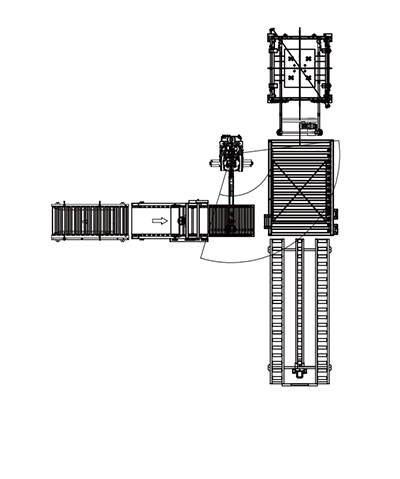 Parallel arrangement, pallets are transported from the pallet warehouse and transported using conveyor belts, which can achieve higher automation. |