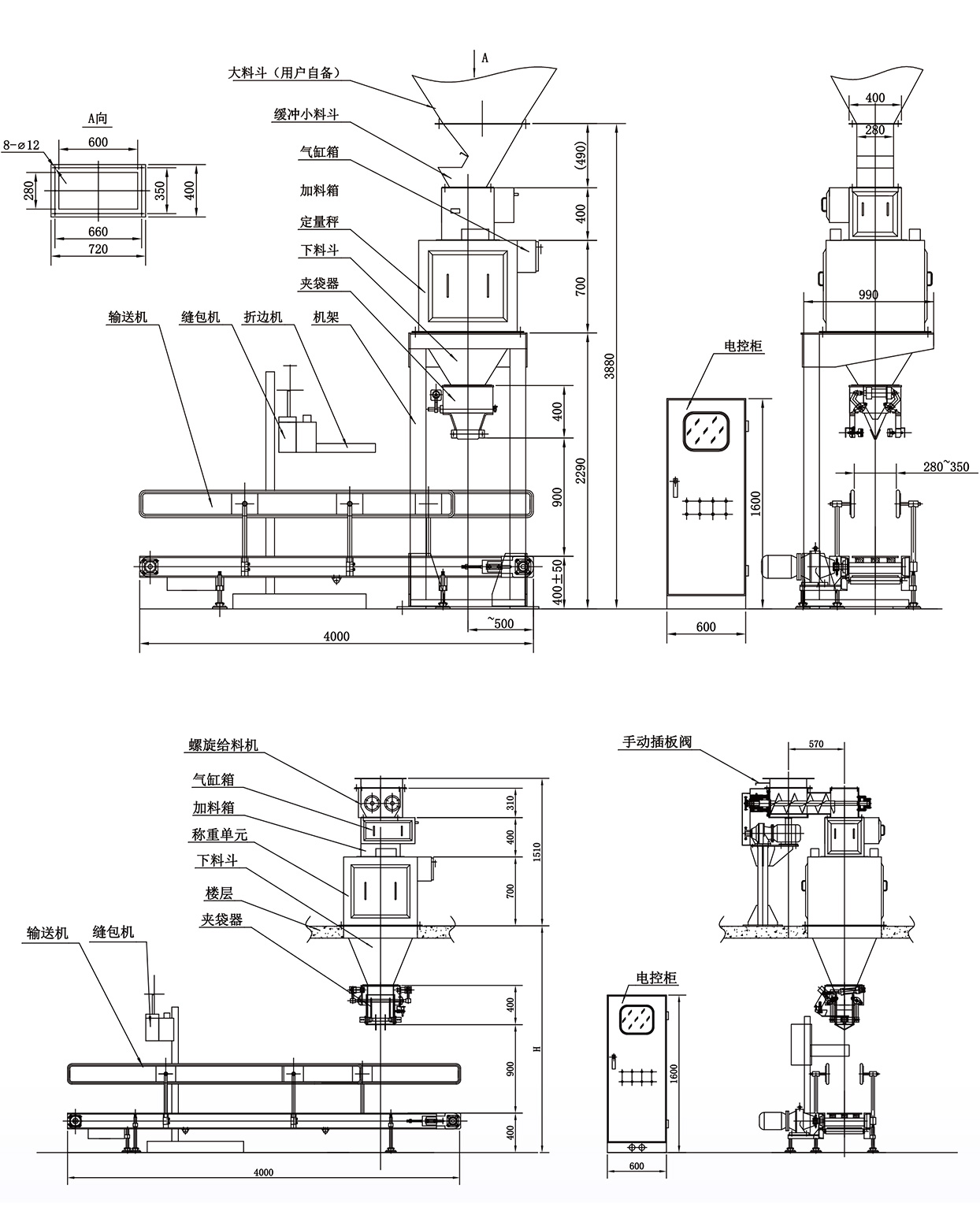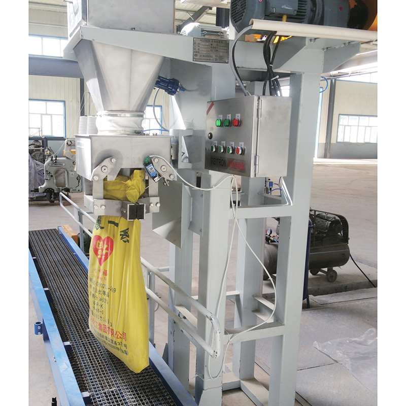 Net weight quantitative packaging scale (single scale) : After the material is weighed in a single weighing bucket, it is then loaded into the packaging bag, which improves the measurement speed and accuracy. The product can be used independently, or can be fully integrated into the packaging production line of food, feed, pet food, agriculture, chemical, pharmaceutical or mineral industries, etc. The product is combined with the conveyor and the sewing machine to become a semi-automatic packaging line. Products with automatic bagging machine, automatic folding and sewing machine, shaping conveyor, automatic palletizing machine is a set of automatic packaging and palletizing line